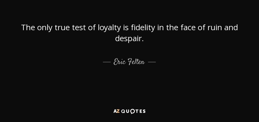 Recent events have the caveat ‘ ‘who have been loyal to me.’ Betrayal is hard when you do it and I now see more than ever the value of fidelity from me toward others. That said, I get truly pissed off about people who betray me as a result too. Once you do that, my loyalty to you goes right out the window. People screw up, it should be no cause to be disloyal to them. Something me and my wife have learned together which is probably what makes our relationship much tighter in some ways than it has ever been.