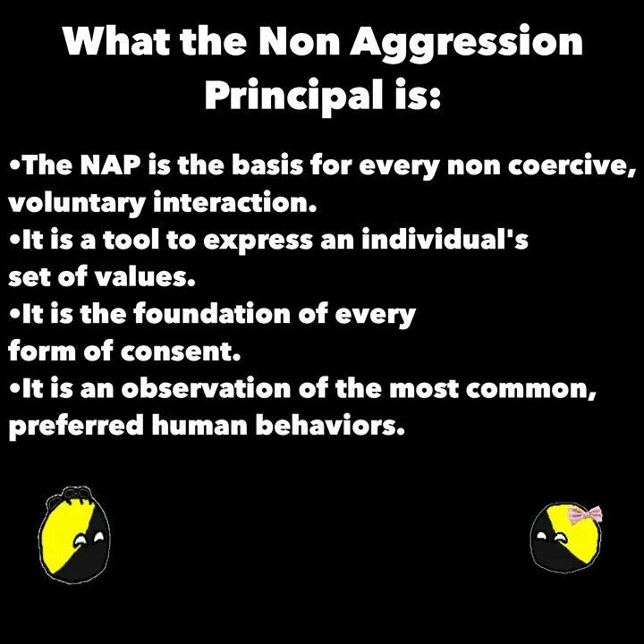 The Non-Aggression Principle (NAP) is stated many ways but the basic gist of it is a combination of “do unto others as you would have them do unto you” and “love your neighbor as yourself”. Every major religion in the world has something like this in it, but then all of them turn around and use fraud or even force to control others.