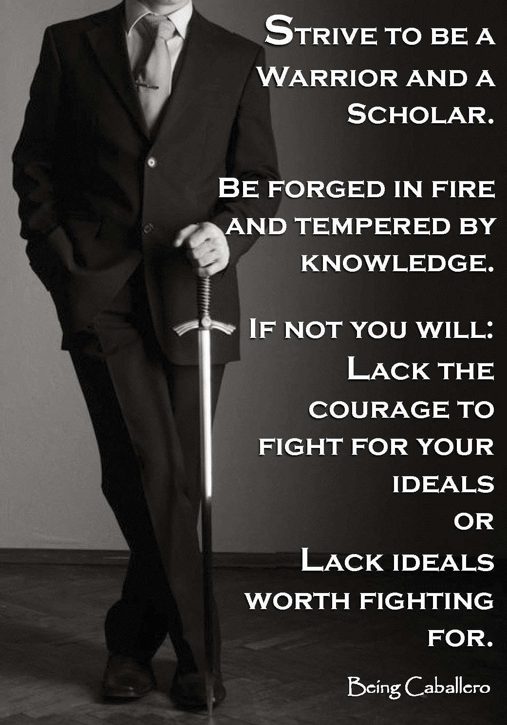 My foundational image of myself remains the warrior scholar or the scholarly warrior. I don’t fight actual physical battles but I understand the connection between courage and fighting for one’s ideals. To be honorable, courageous and truthful requires a mindset of war and intelligence.