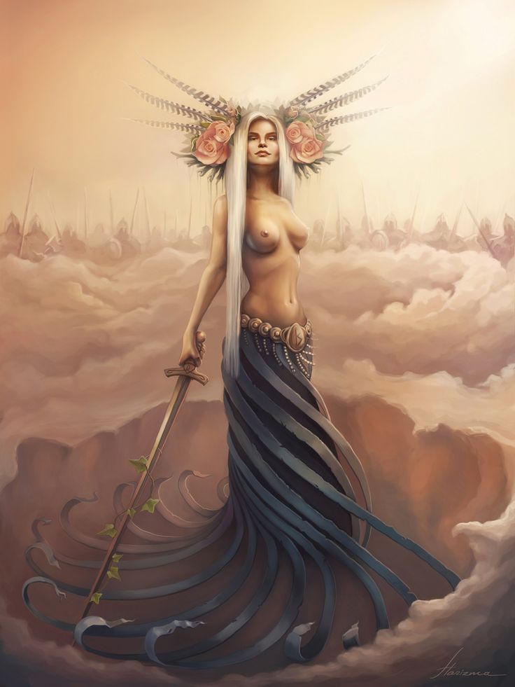 Of all the Norse Goddesses, there is none more revered and honored than Frigg. Freya has her place, but she is more of the party girl/warrior whose motto seems very much to be “if you can’t lay ’em, slay ’em”. Frigg, by contrast, is close to hearth and home. She is the living image of the household matriarch who rules her realms with a firm but loving hand. You don’t really think of her as a war goddess like you do with Freya, but that doesn’t mean that sometimes she doesn’t pick up sword and spear to defend hearth and home.