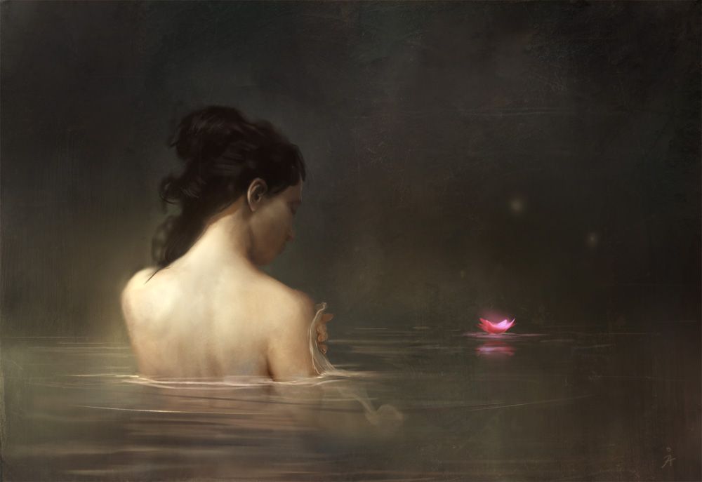 Then bold a brass she strode down into the water up to her waist as well.